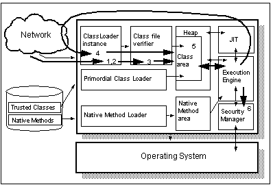 Clearly, we would not want to overwrite a trusted JVM class with an identically named class from a Web server since this would undermine the entire Java security model (the SecurityManager class is responsible for a large part of the JVM runtime security and is a trusted local class; consider what would happen to security if the SecurityManager could be replaced by an applet loaded from a remote site). The class loader must therefore ensure that trusted local classes are loaded in preference to remote classes where a name clash occurs.