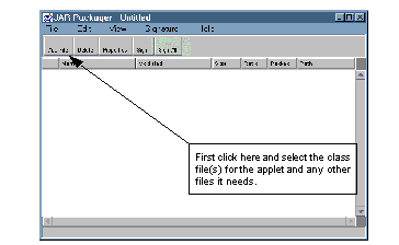 We used the graphical version of the tool, which is a Java application invoked from Netscape Navigator (see See JAR Packager, Initial Screen ).