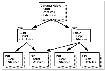 Cryptolope Live! deals in Cryptolope objects. These are a combination of content, scripts and extensions. The content (part) is the payload of a Cryptolope object and may be Java classes, digital audio or any type of digital content. A Cryptolope object may contain a number of parts all of which are held in a folder structure, similar to a filing system. The scripts are a small set of business rules associated with each part and folder which determine what the Cryptolope object will do in terms of rendering content, billing the user, metering usage or whatever. The extensions are pure Java classes which extend the capabilities of the scripting language when more complex functions are required (see See Cryptolope Live! Objects ).