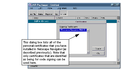 Netscape have embraced the JAR format and the opportunities that signing offers. In fact, they are using the format for other types of Web content, such as JavaScript programs, plug-ins and Web pages. However, at the time of writing you could not simply use a Netscape browser to access a JAR signed using the javakey command as described in See JavaSoft Signed JAR Example . There are two reasons for this: