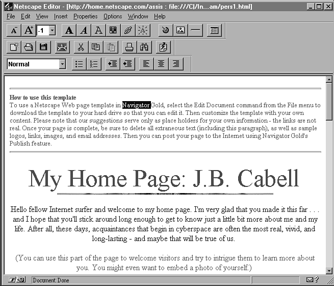 Figure 6.8. Netscape Navigator Gold (Editing Window).