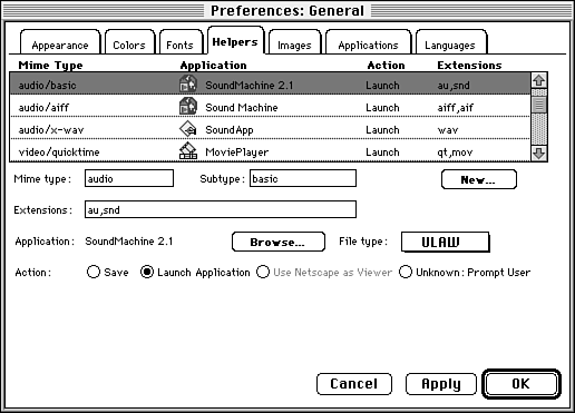Figure 9.1. Netscape's Helper applications.