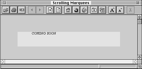 A marquee is a line of scrolling text that moves from one side of the Web page to the other. Although you can create marquees with just about any form of inline animation, Internet Explorer's <MARQUEE> tag allows you to create a marquee quickly and easily (and you don't need to download any other image or animation files). Figure 9.8 shows a scrolling marquee in Internet Explorer (in the process of scrolling).