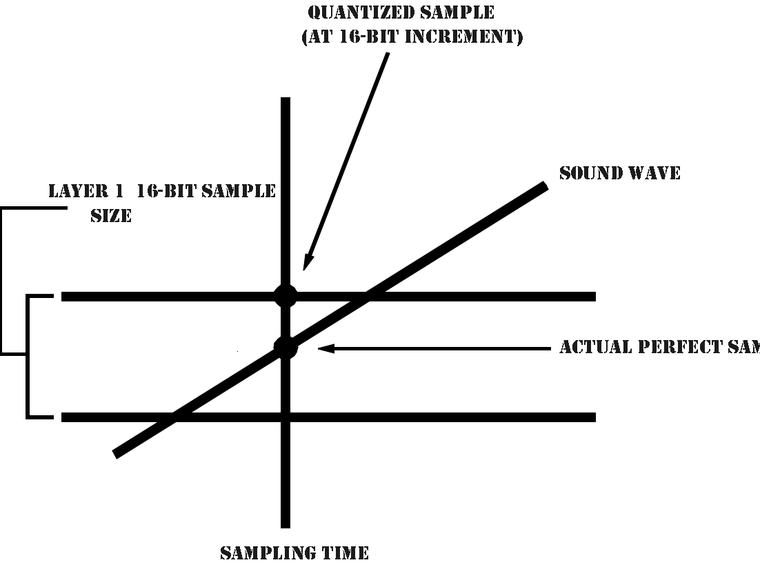 The difference between the actual amplitude value and the rounded-off value is called quantization error (more audio jargon). Lots of quantization error results in a sort of hissing noise in the final sound file.