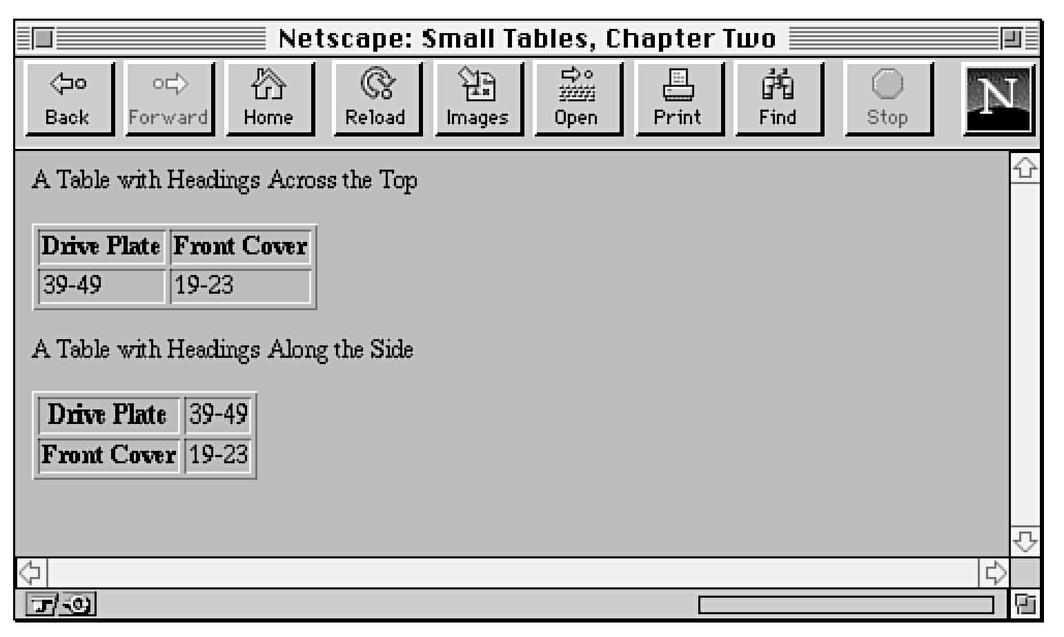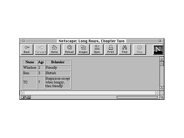 The difficulty with tables is that although most newer browsers do support them, they come out particularly messed up in browsers that don't. You won't lose all the data in the table, but you will lose the formatting, which can make your data just as unreadable as if it hadn't been included at all. For example, Figure 13.33 shows a table that looks pretty nice in Netscape.