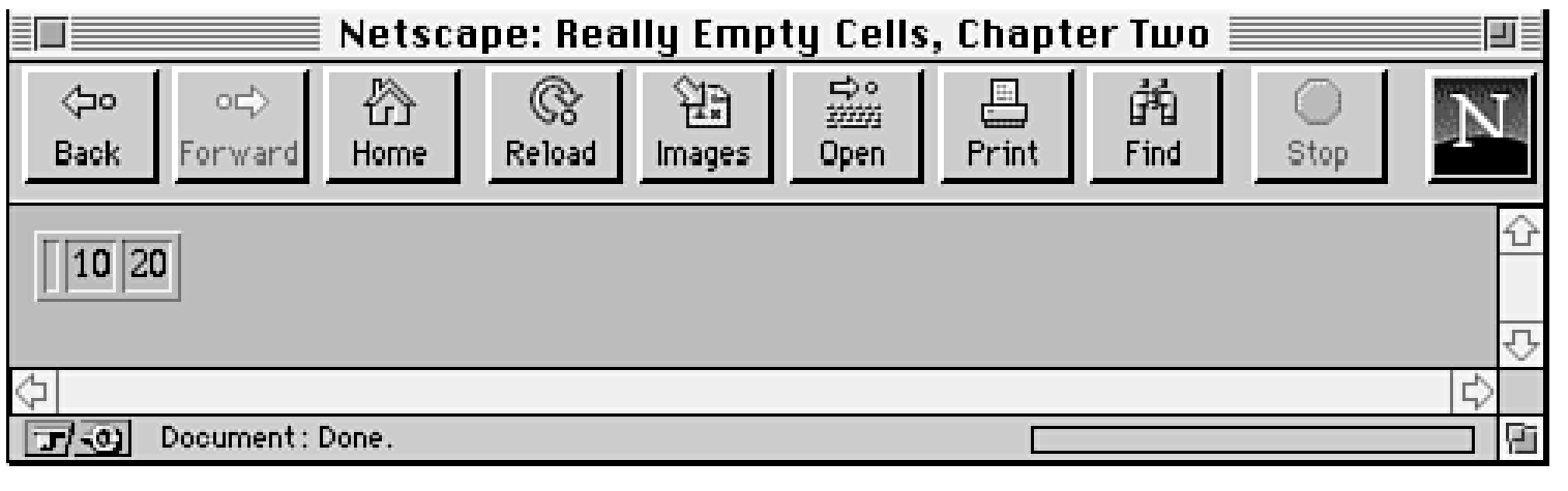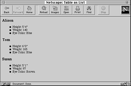 Figure 13.34 shows the same table as viewed by an earlier version of Netscape that didn't support tables.