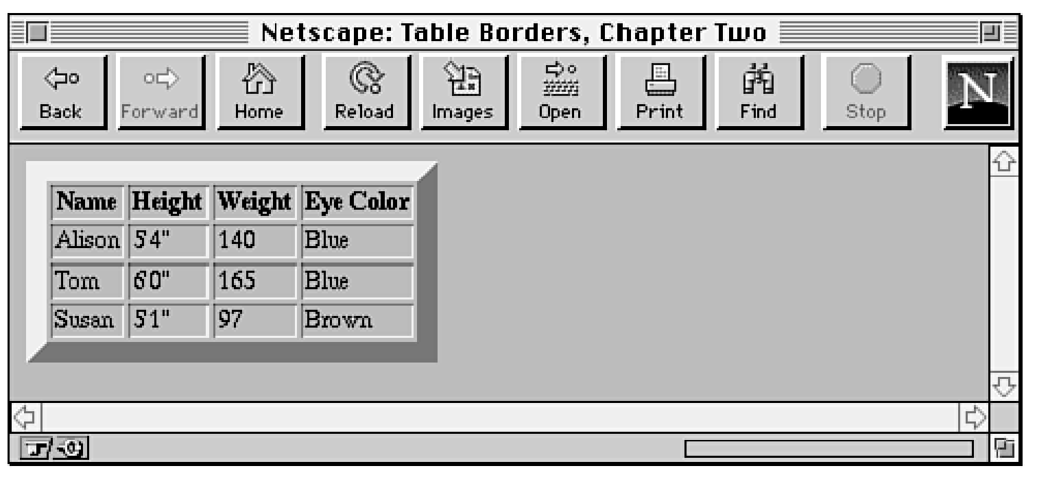 Figure 13.29 shows an example of a table with a border of 10 pixels.