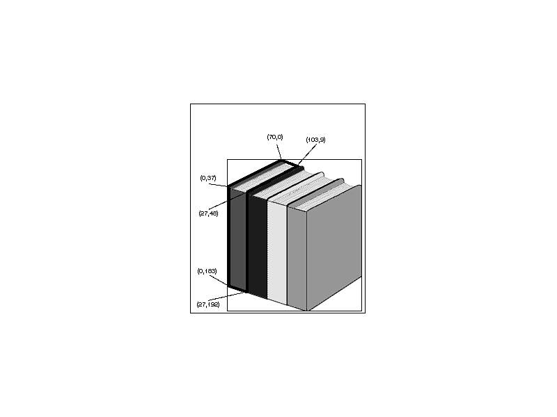 <MAP NAME="books"> <AREA SHAPE="POLY" COORDS="70,0, 0,37, 0,183, 27,192, 27,48, 103,9" HREF="/www/redbook.html"> </MAP>