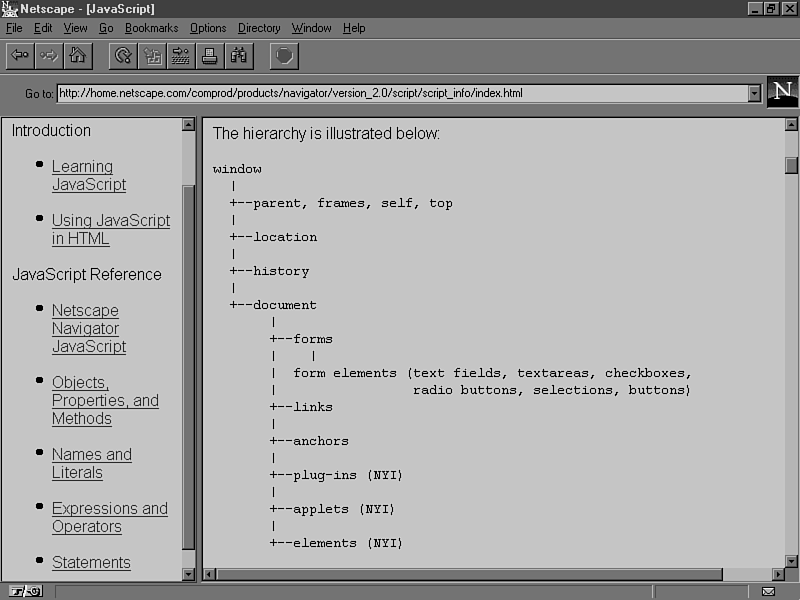 Figure 23.2. The online JavaScript document at Netscape.