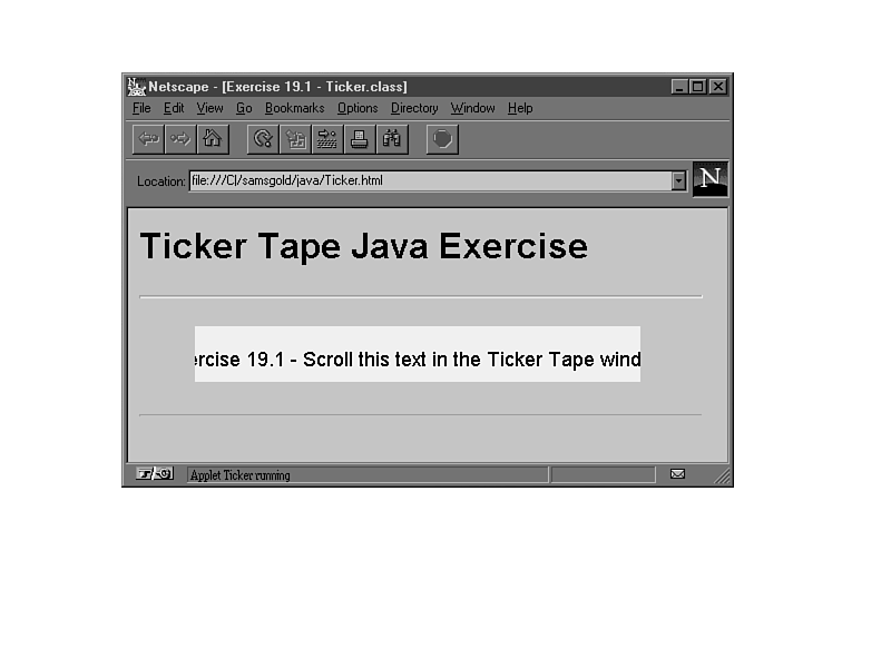 In this basic form, when you load the Web page, the Ticker applet is displayed by using the default values set in the init() method discussed in Exercise 25.1.