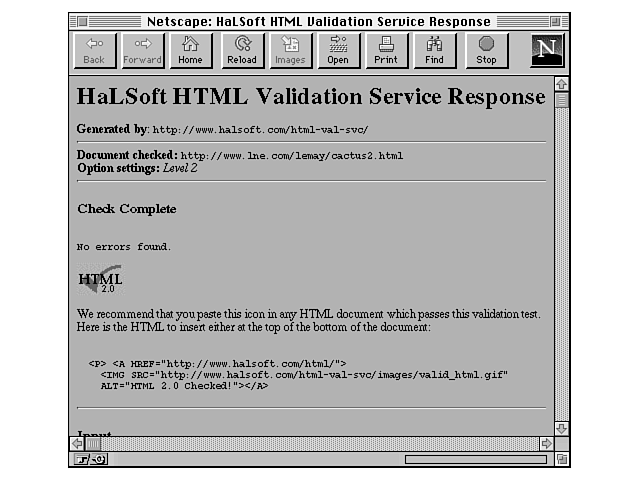 Congratulations! The cactus page is now HTML compliant. And it took only two programs and five iterations.